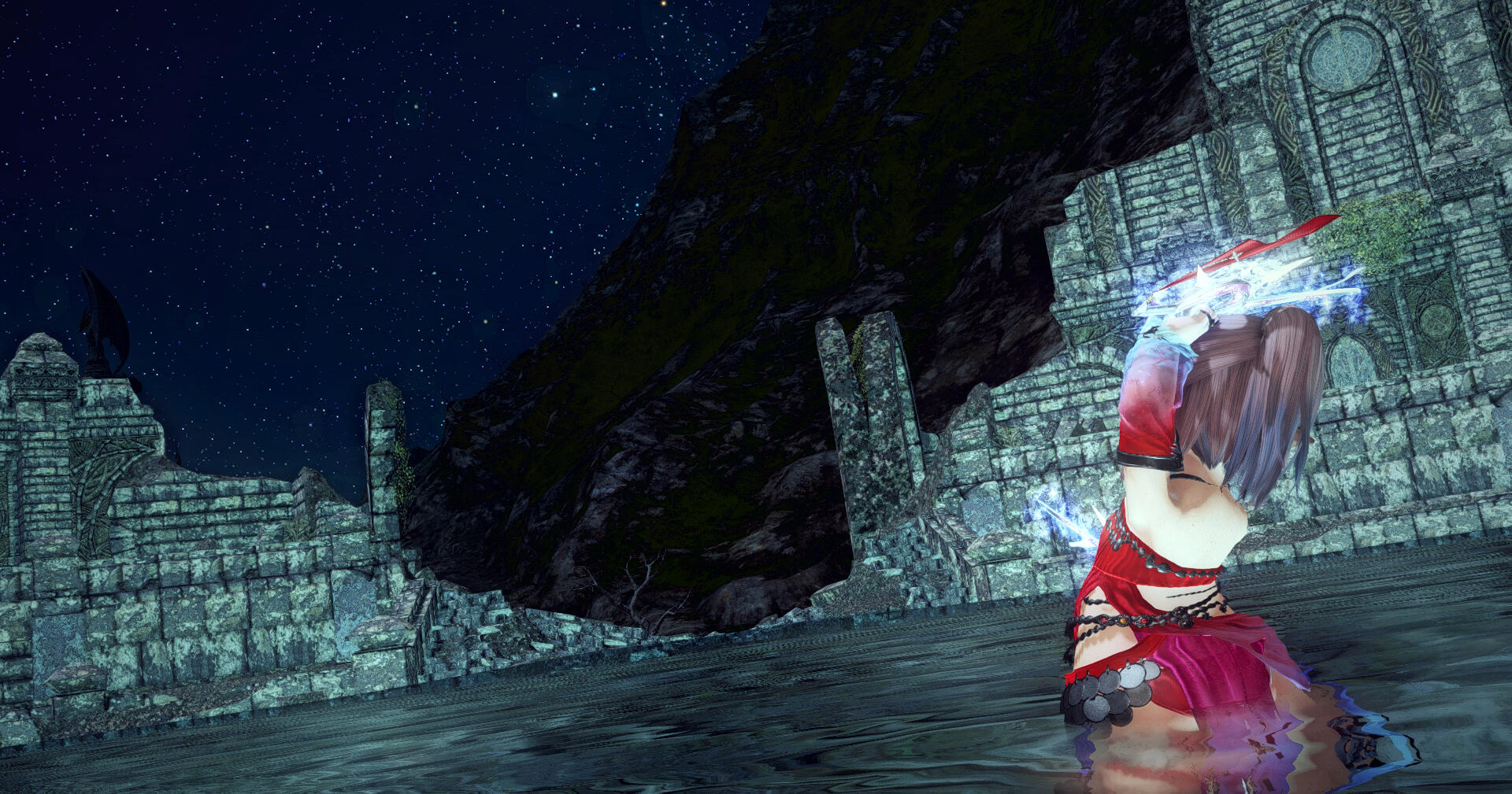 After the performance, she wasted little time approaching the troupe. She laid it on thick yet honestly with the compliments, relaying everything she felt with the excitement of a honeybee in a field of flowers. After nearly talking herself blue, she finally asked the leader if she could learn from them."I've a background in adventuring, and I even know somethings about dancing normally. If I was given the opportunity to learn from you, I'm sure I could help out and..." She rambled on, determined to convince them she was worthy. The leader cut her off mid ramble before accepting her into the troupe with little fuss, much to Ayune's surprise. After fighting tooth and nail most of her life to have some semblance of usefulness, it was a shock to be accepted so easily."T-Thank you! You...I'll make sure you don't regret this! I'll train every day and—"The troupe's leader merely nodded along to Ayune's words with a smile.