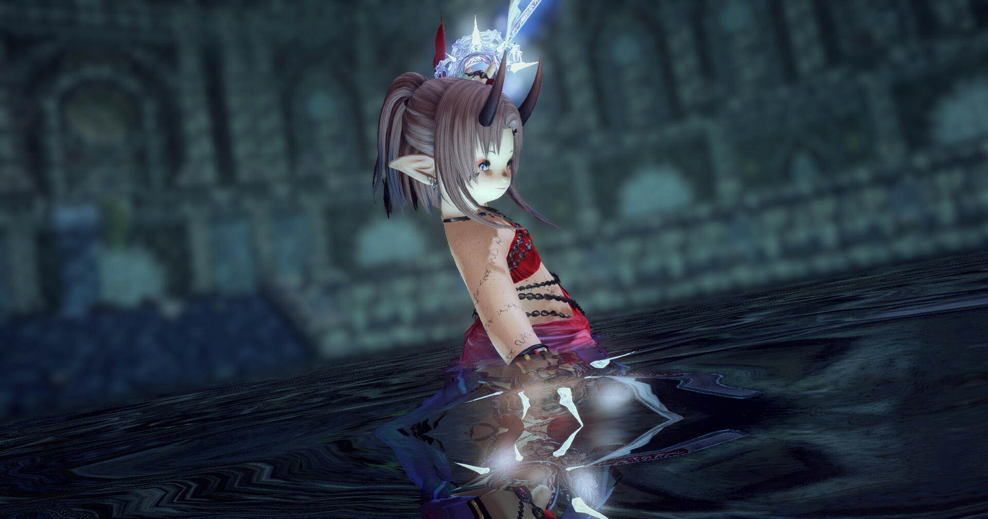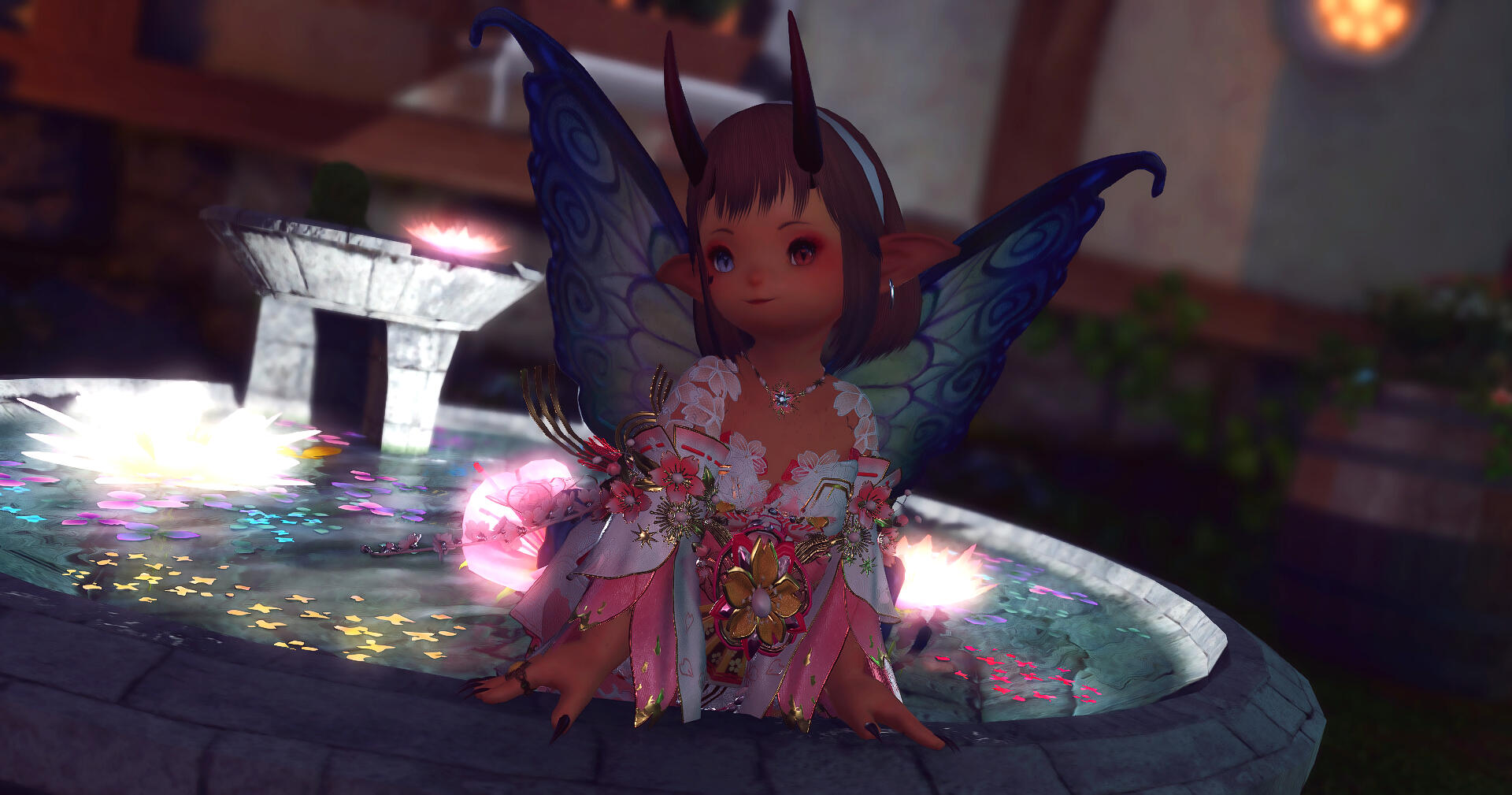 Mending Hand: Ayune usually won't hesitate to heal those who need healing. After all, what's the use of learning conjury if you won't help folks? It's not unlikely that she'd offer to heal your character if they needed it or asked for it.A Familiar Face: Whether it be from her wandering or she has aided your character in the past, they've found her again. It's not guaranteed she'll remember them, however. She's a busy woman after all.An Abnormal Appearance: Ayune looks far from normal. Not only is she taller than most lalafellin folk, but she also has slit pupils and two horns jutting out of her head. Care to pry?