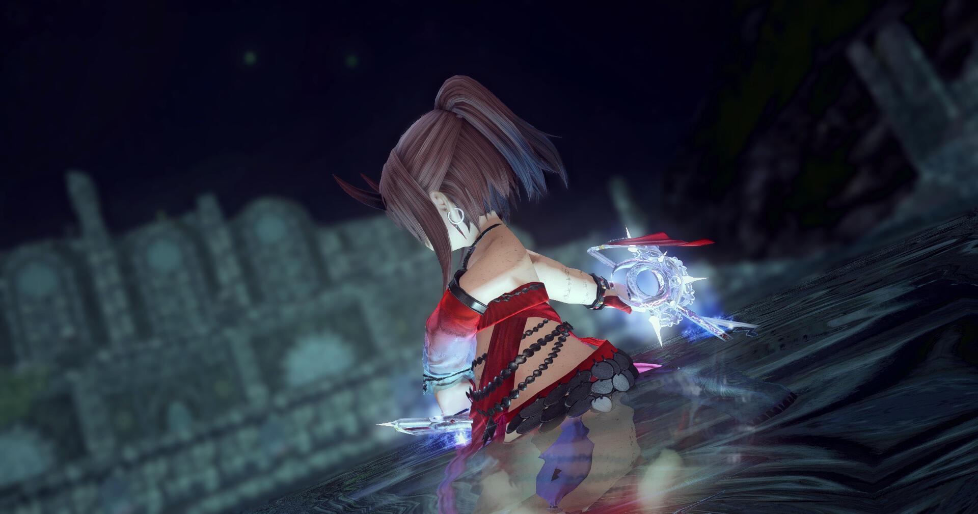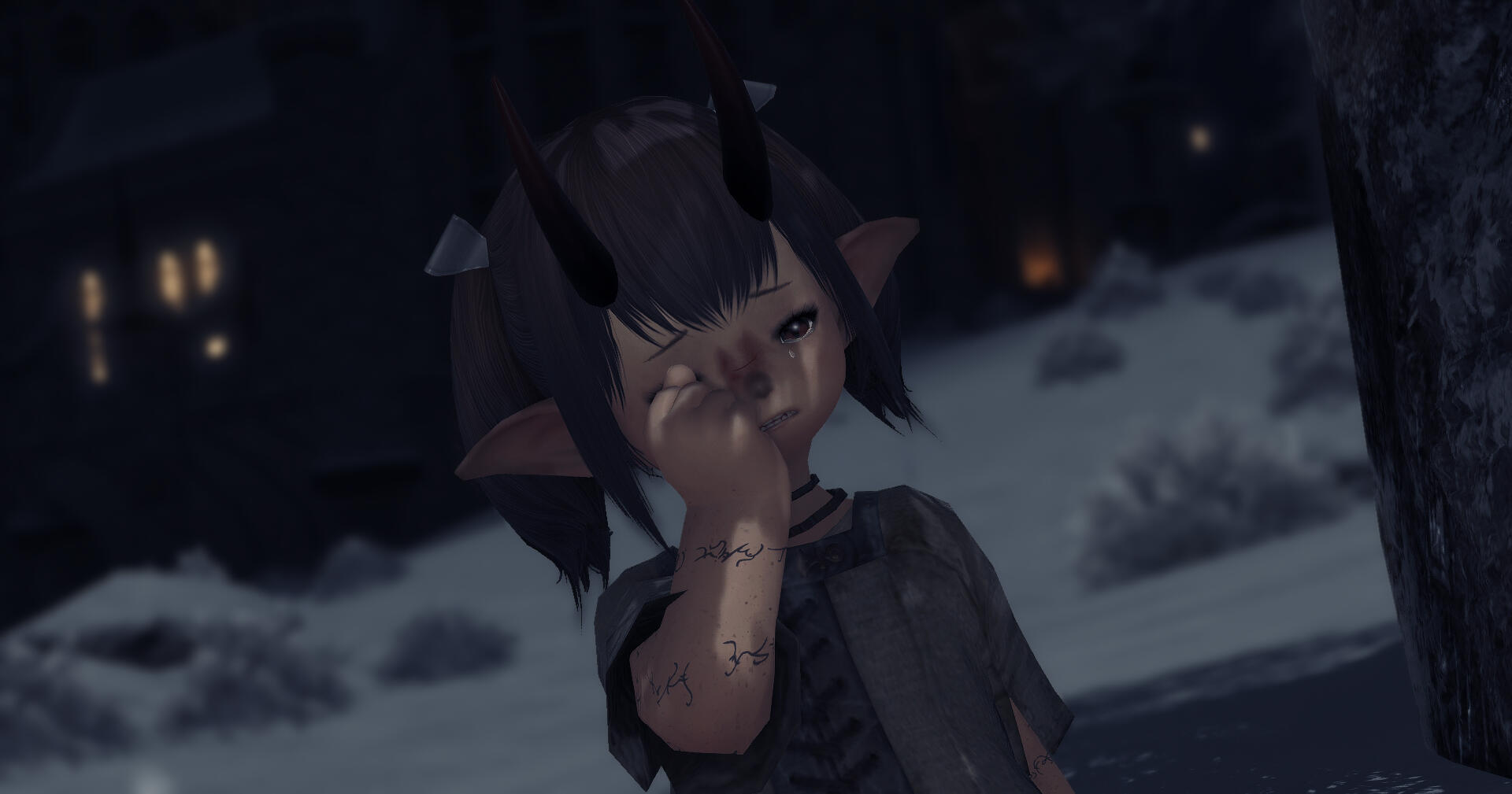 Everything fell into chaos. The thieves were too quick for the novice adventurers, weaving in and out of the shadows before any of them could land a blow. Daggers would flash, slicing skin before disappearing again. They snuck past Ayune's guard again and again, filling her ears with her friends' screams.The scent of blood was heavy in the air when a torch was finally lit. The thieves were all dead, but at what cost?She stumbled over to the one form still breathing, dropping to her knees. "Hold on, please. I can fix this. I...I can...I..." Ayune balled her fists in the fabric of the miqo'te's tunic as his gaze grew ever more distant. "Just hold on a little longer. I can find a healer and we...we can..."She wasn't strong enough. Here, with her hands soaked in her friend's blood, that point was made ever clearer. She couldn't protect any of them.